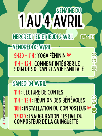Venez à la Guinguette pour vous poser, télé-travailler, allaiter tranquillement, prendre le gouter ou l’apéro, lire ou rêver... et ne loupez pas nos quelques rdv festifs: